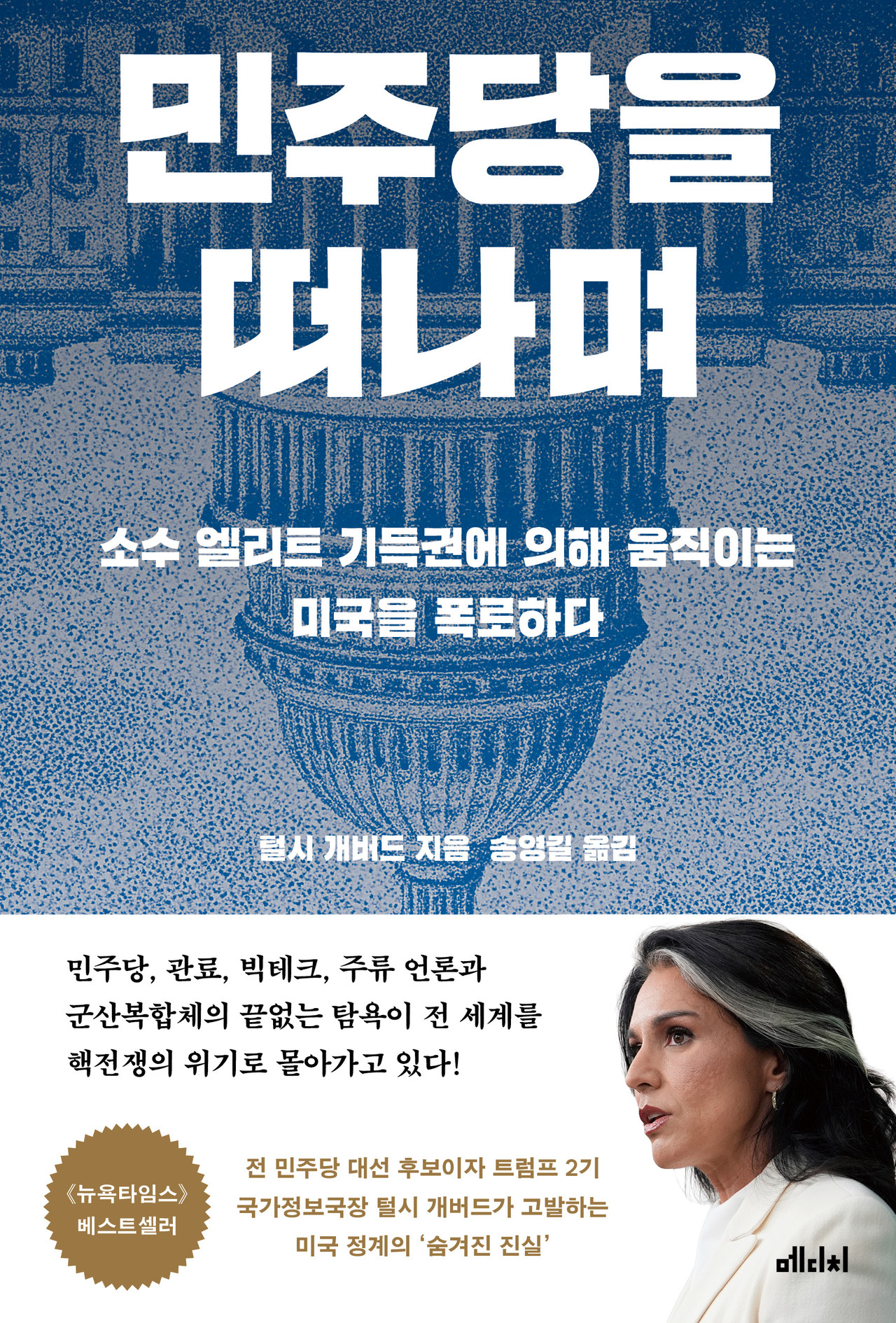 《민주당을 떠나며》는 최초의 참전 용사 출신 여성 민주당 전 연방 하원의원이자 대통령 경선 후보였던 털시 개버드가 미국 정계와 민주당의 실체를 폭로하는 책이다. 이 책의 한국어판 출간 의미는 다음과 같다. 먼저 미국 민주당, 나아가 진보세력에 대한 저자의 비판 지점을 살펴봄으로써 한국 정치를 되돌아보는 계기로 삼을 수 있을 것이다. 아울러 트럼프 2기 행정부의 정보를 총괄하는 국가정보국장 직책을 맡은 저자의 국제적 시각을 되짚어봄으로써 국내 외교안보 분야 정책 결정자들은 한미 관계, 나아가 동북아 정세 판단의 근거로 활용할 수 있을 것이다.