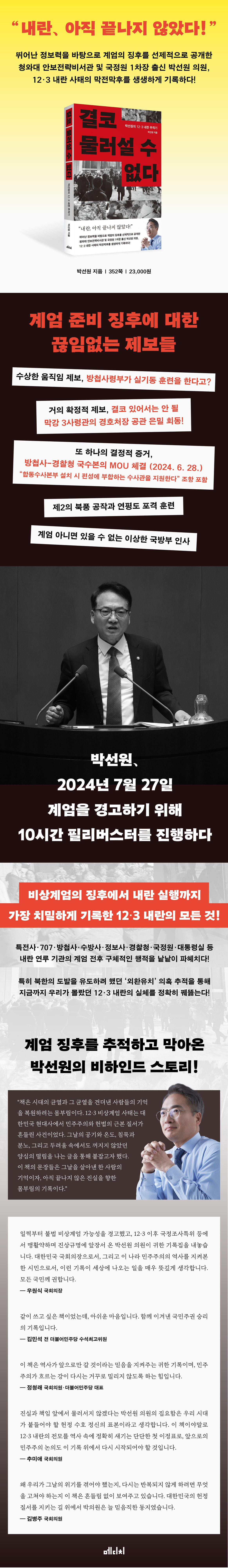 뛰어난 정보력을 바탕으로 비상계엄의 징후를 선제적으로 포착하고, 필리버스터 등을 통해 공개적으로 저지하려는 활동을 해온 그가 12·3 내란 사태의 막전막후를 생생하게 기록했다!